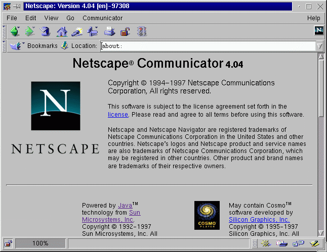 สำหรับเน็ตสเคปเวอร์ชั่นนี้เมื่อเราคลิกที่เมนู 'About Communicator' จะเห็นว่าส่วนที่เป็น 'Powered by Java' ที่เคยมีโลโกรูปถ้วยกาแฟที่แสดงว่าเป็นผลิตภัณฑ์ที่มีความเข้ากันได้กับจาวา ถูกลบออกไปชั่วคราว ทั้งนี้เกิดจากปัญหาที่ทางเน็ตสเคปไม่สามารถพัฒนาเกี่ยวกับเรื่องของจาวาให้มีความเข้ากันได้กับเวอร์ชั่นใหม่ได้ 100% ดังนั้นจึงต้องมีการลบโลโกนี้ออกไปเพื่อหลีกเลี่ยงการละเมิดทางสัญญา
